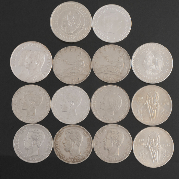 Conjunto de 14 monedas en plata de 999 milésimas. Siglo XIX