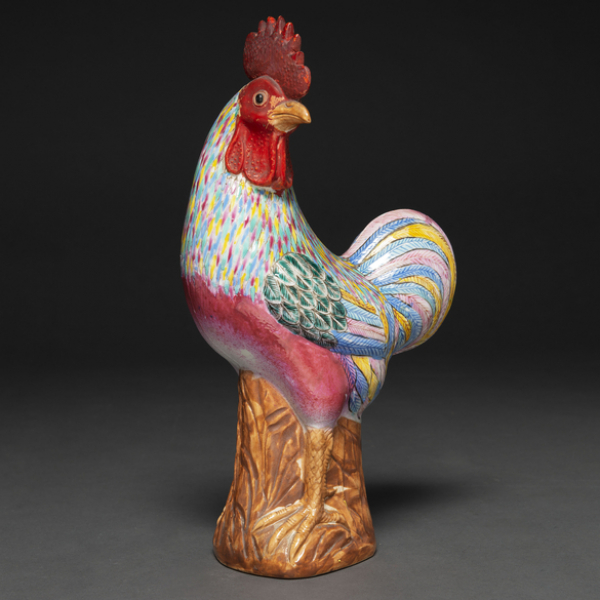"Gallo" Figura en porcelana china familia rosa. Trabajo Chino, Siglo XX
