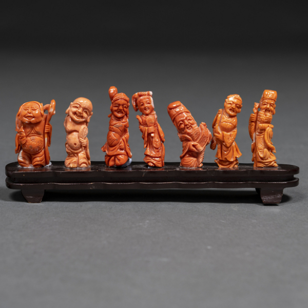 Conjunto de siete sabios de la antigüedad tallados en coral rojo. Primer tercio del siglo XX