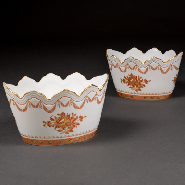 Pareja de centros en porcelana portuguesa Vista Alegre del siglo XX.