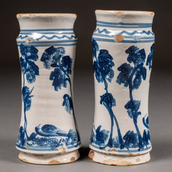 Pareja de albarelos en cerámica de teruel. Siglo XVIII
