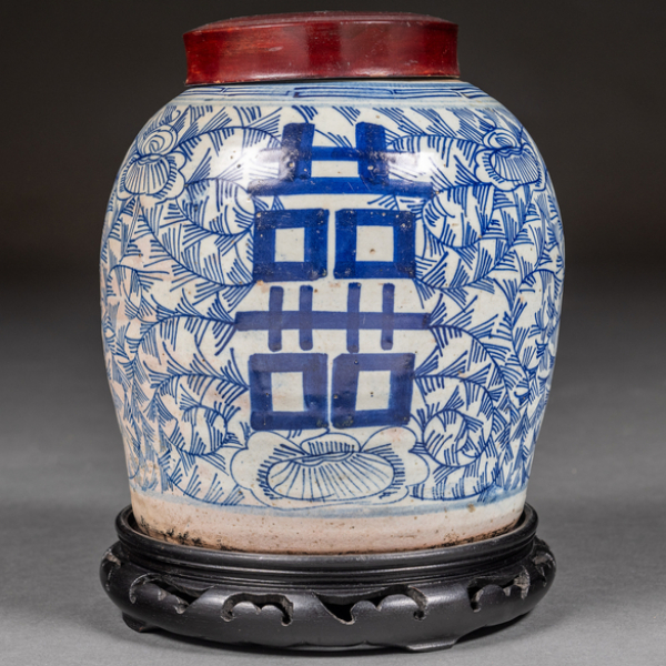 Tibor en porcelana china azul y blanca de finales del siglo XIX