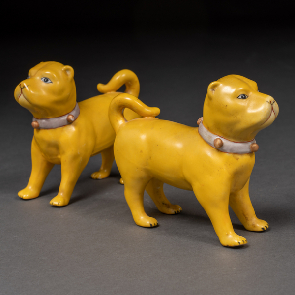 Pareja de perros en porcelana china color amarilla del siglo XX.