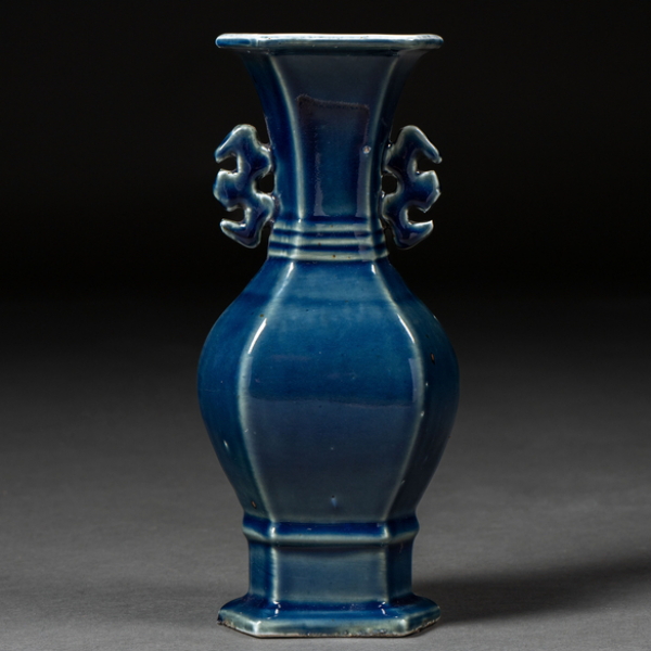 Jarrón en porcelana china color azul del siglo XIX-XX