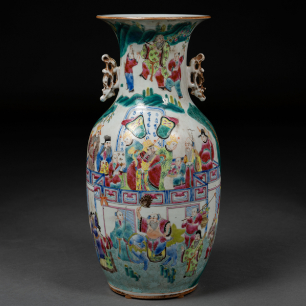 Jarrón en porcelana china familia rosa del siglo XIX
