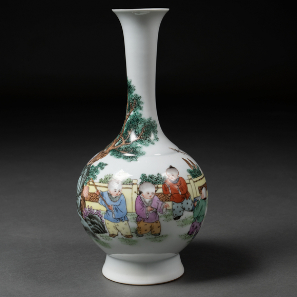 "Niños Jugando" Jarrón en porcelana china época república.