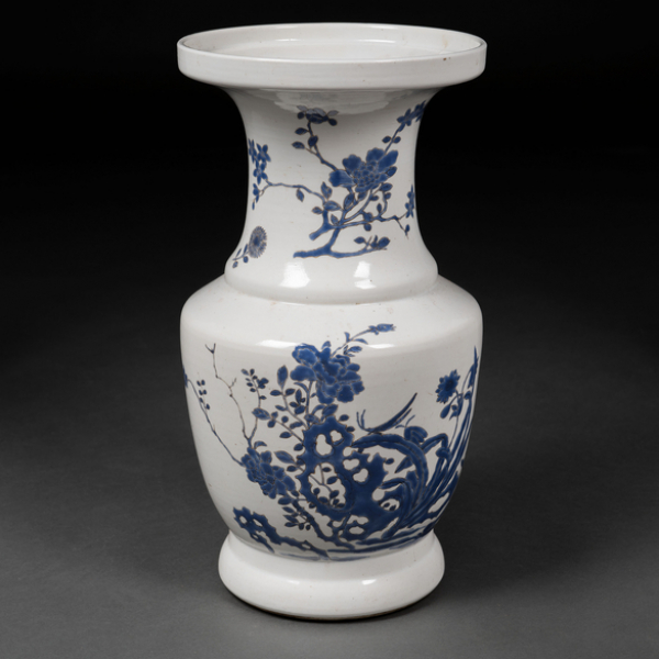 Jarrón en porcelana china color azul y blanca del siglo XIX