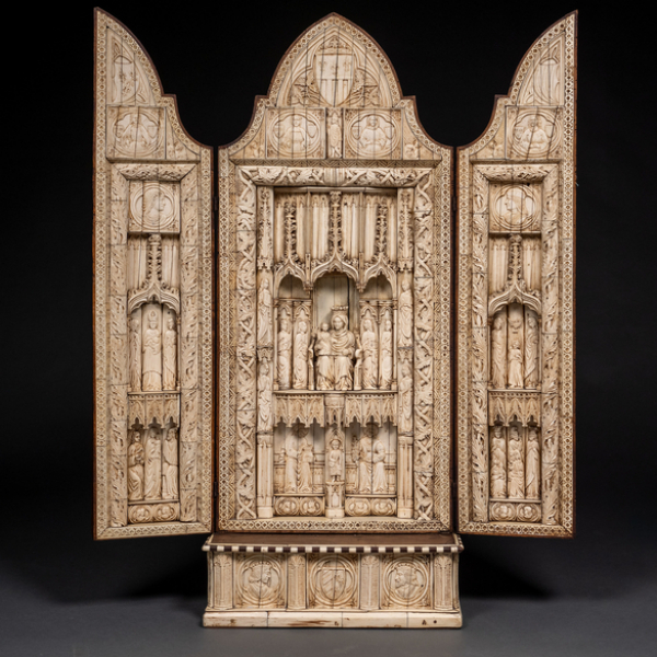 Tríptico de estilo gótico en hueso tallado. Siglo XX