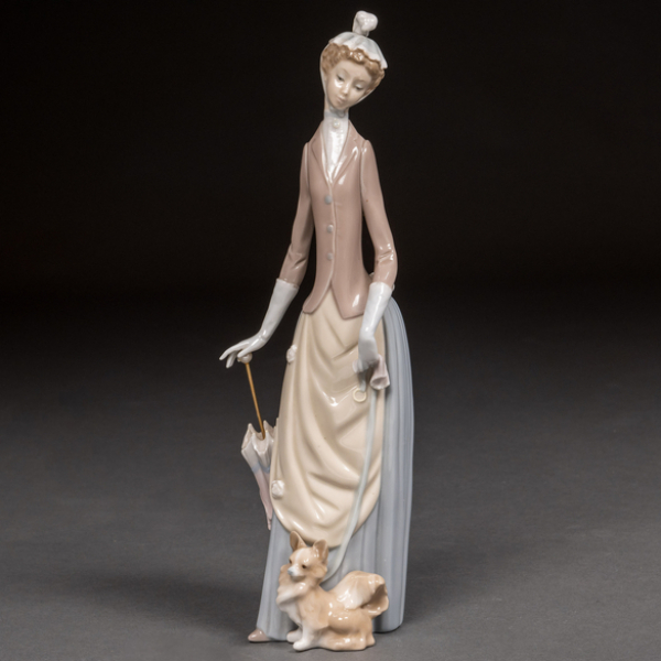 "Dama con paraguas" Figura en porcelana esmaltada de Lladró.