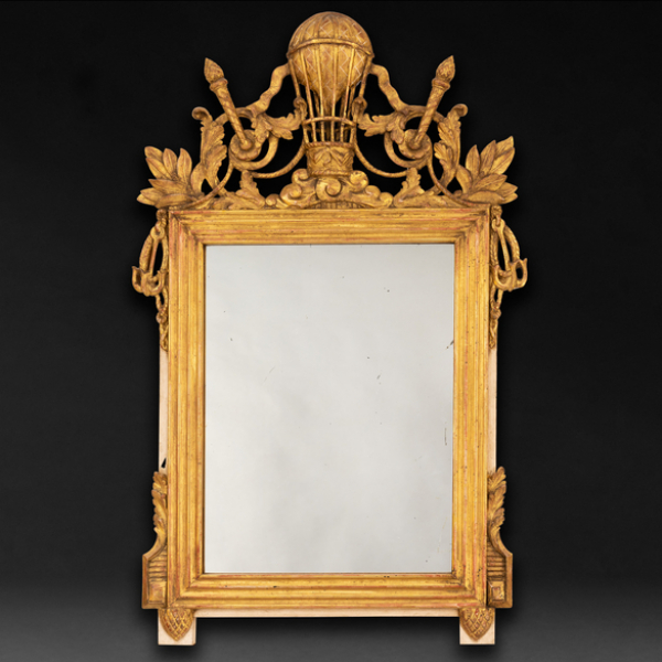 Espejo de pared estilo Luís XVI en madera tallada y dorada. Siglo XX