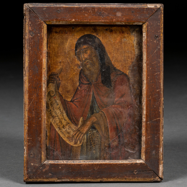 Icono ruso pintado al óleo y pan de oro sobre tabla del siglo XIX