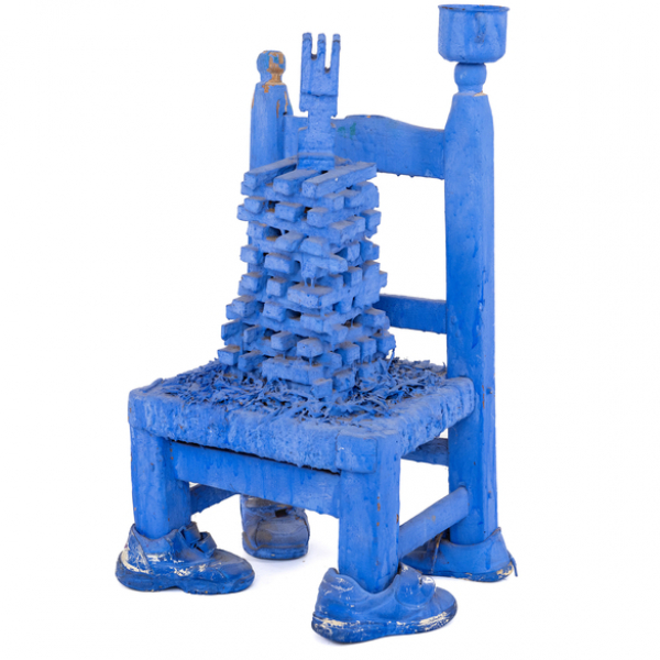 "Homenaje a Jorge Oteiza" JUAN GORRITI (Oderitz, 1942) Silla de madera policromada en azul.