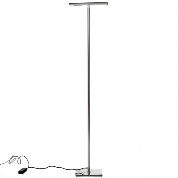 Lámpara de pie en metal cromado con base cuadrada del siglo XX