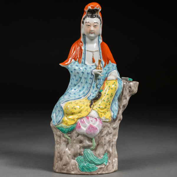 "Guanyin sobre flor de loto" Figura en porcelana china familia rosa época República (1911-49)