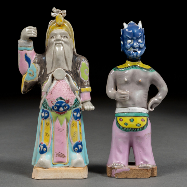 Pareja de figuras en porcelana china familia rosa. Trabajo chino, Siglo XVIII