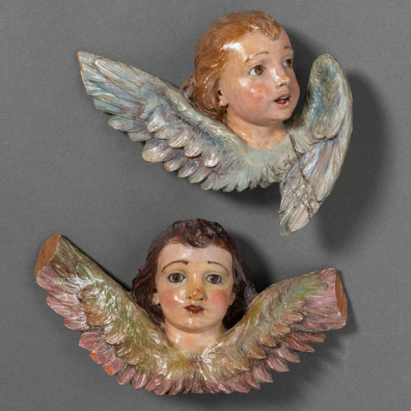 Pareja de querubines en madera tallada y policromada de finales del siglo XIX