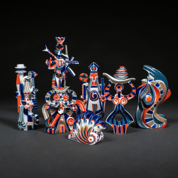 Conjunto de siete piezas en cerámica de Sagardelos.