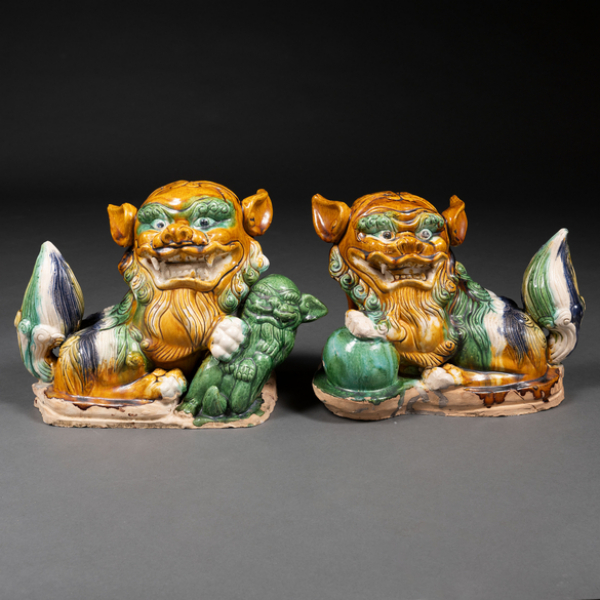 Pareja de leones Foó en cerámica vidriada del siglo XX