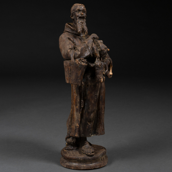 "Vendedor de frutas" Figura en madera tallada y pintada. Siglo XIX