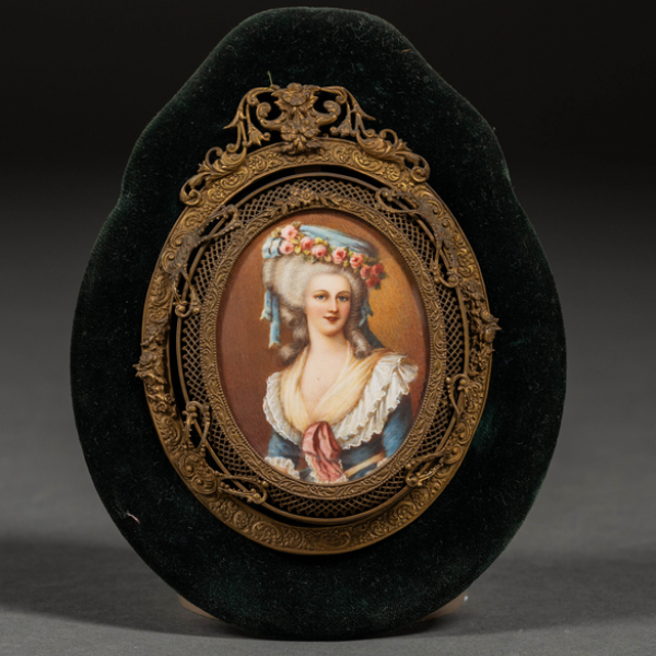 "Dama con tocado de flores" Miniatura pintada al óleo sobre marfil.