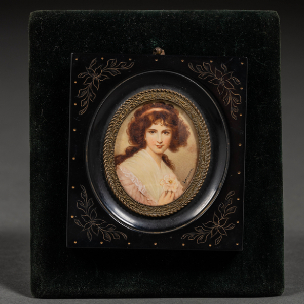 "Joven con flor" Miniatura pintada al óleo sobre placa de marfil.