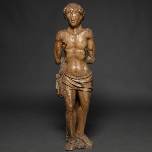 "San Sebastián" Escultura de bulto redondo en madera tallada del siglo XVI-XVII