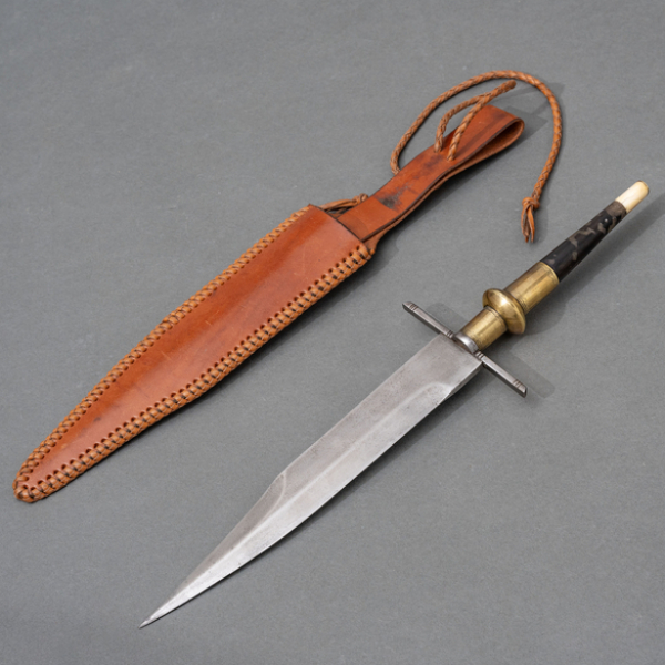 Cuchillo de taco con hoja de acero y empuñadura en latón, madera y hueso. h. 1800