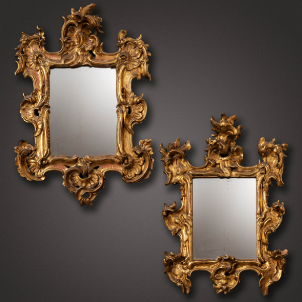 Pareja de espejos en madera tallada y dorada del siglo XIX.