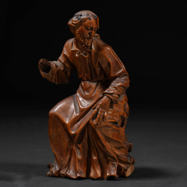 "San José" Escultura de bulto redondo en madera de boj tallada. Trabajo Alemán, Siglo XVII.