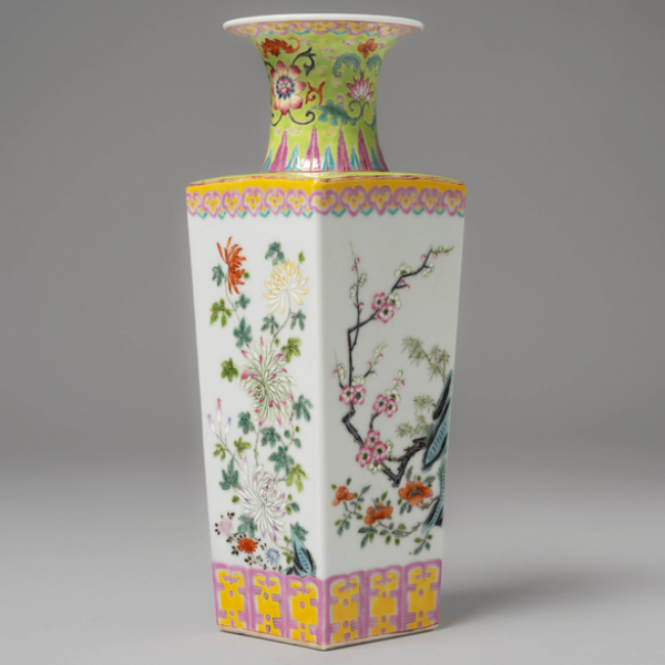 Jarrón en porcelana china familia rosa. Trabajo chino del siglo XX.