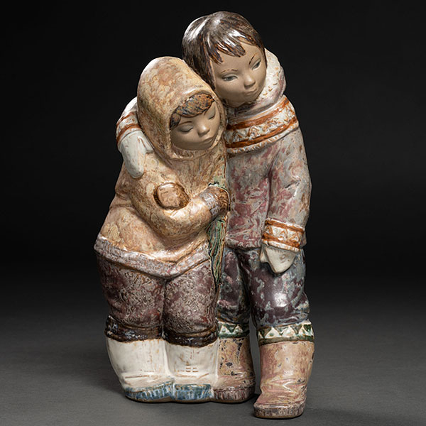 Niños esquimales" Figura en porcelana de Lladró del siglo XX.