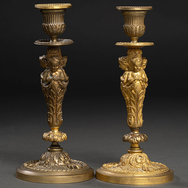Pareja de candeleros en bronce dorado del siglo XIX.