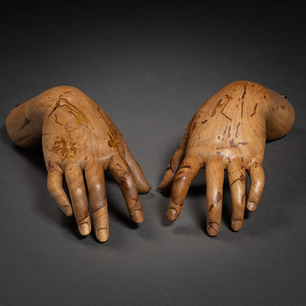 Pareja de manos en madera tallada del siglo XIX-XX.