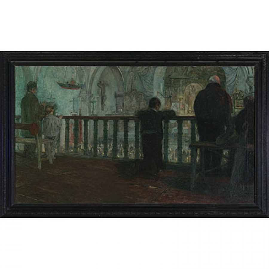 Firmado y fechado en 1898. Exposición y bibliografía: "IV Exposición de Bellas Artes e Industrias Artísticas", Palacio de Bellas Artes, Barcelona, 1898, p. 21 y 75, nº cat. 381 (reproducido). Bibliografía: L. C., 'Exposición de Bellas Artes. V. Sala quinta', "La Dinastía", Barcelona, 1-7-1898, p. 1 ("Anselmo Guinea con el título de 'Misa mayor' presenta el interior de una iglesia pintado con notable acierto y con la valentía y sello de individualidad que le distinguen y le hemos visto en otros cuadros"); y Mikel Lertxundi Galiana, "Anselmo Guinea (1855-1906). Los orígenes de la modernidad en la pintura vasca", Bilbao, Museo de Bellas Artes de Bilbao, 2012, p. 235
