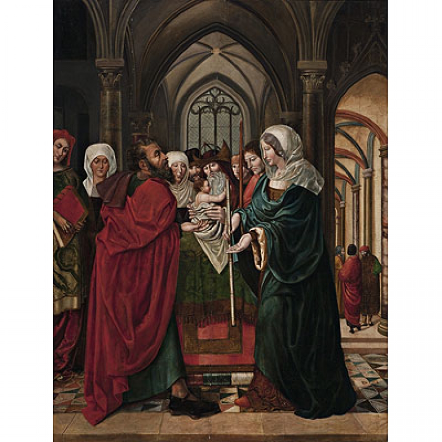 Maestro de Sigena Activo entre 1515 y 1521 La presentación de Jesús en el templo Óleo sobre tabla Realizado entre 1515 y 1519. Procedencia: retablo mayor del monasterio de Santa María de Sigena; colección particular. Bibliografía: E. Bertaux, "Exposición Retrospectiva de Arte - 1908", Zaragoza-París, 1910, p. 66; Antonio Naval Mas, 'El retablo mayor del Real Monasterio de Sigena', "Goya", nº 229-230, 1992, p. 39-49; Elena Toló López, "El Mestre de Sixena i el Mestre d'Alzira: dos enigmes de la pintura del Renaixement", Universitat de Lleida, 2015, vol. I, p. 62, 63, 69 y 112, vol. II, p. 33, 86, 145, 160, 162, 300, 309, 321, 326 y 327. Agradecemos la colaboración de Irune Fiz, imprescindible en la catalogación de esta obra 169x128 cm