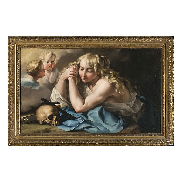 Firmado. Procedencia: colección Giuseppe Gonella, Roma; adquirido por el Padre Bonaventura Ubach, con destino a la abadía de Montserrat; vendido en 1944 por 10.000 pts. a un coleccionista; colección particular, Barcelona. Bibliografía: P. Anselm Ferrer, «Analecta Montserratensia», 1, 1917, p. 338-340 (como obra de Le Mura); P. J. de C. Laplana, "Una Magdalena no del todo arrepentida", http://larebotigamdm.blogspot.com.es/2009/11/notulae-notas-de-archivo-2.html (publicación online)