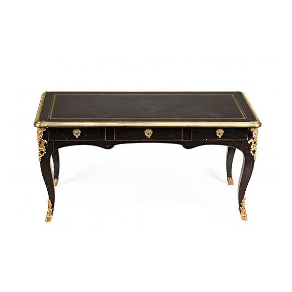 Escritorio "bureau-plat" estilo Napoleón III en madera ebonizada con monturas en bronce dorado, del primer tercio del siglo XX