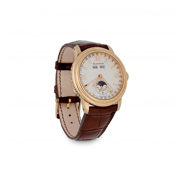 Caja de oro rosado con 38mm de diámetro. Correa de cuero de cocodrilo con cierre de hebilla. Incluye estuche y documentación. En estado de marcha.