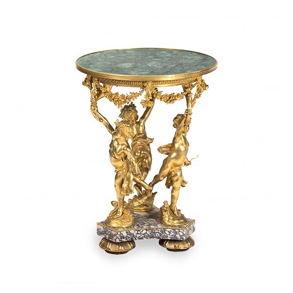 Con sobre circular sustentado por tres niños sobre base zoomorfa. Firmada