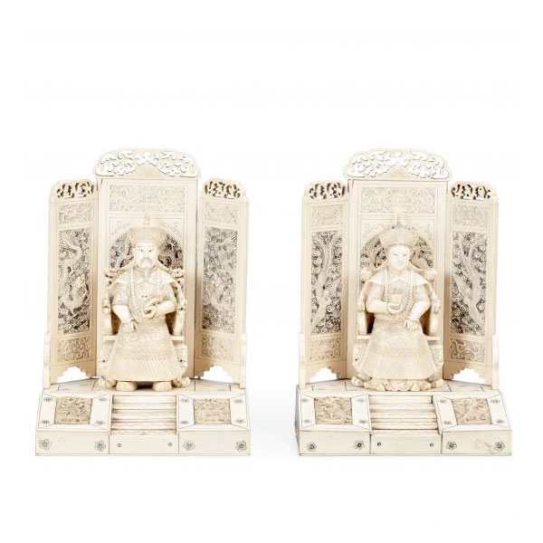 "Emperadores"Pareja de esculturas en marfil tallado, grabado y calado.