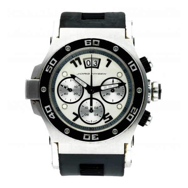 Calendario big date a las 12. Corona rosca. Cristal zafiro posterior con maquina vista. Correa de caucho con cierre desplegable oculto. Incluye documentación. En estado de marcha.