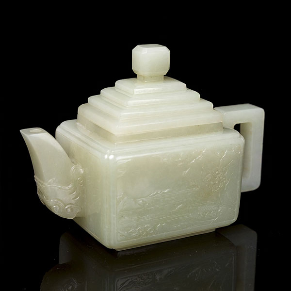 Tetera de jade blanco "Lago", dinastía Qing.