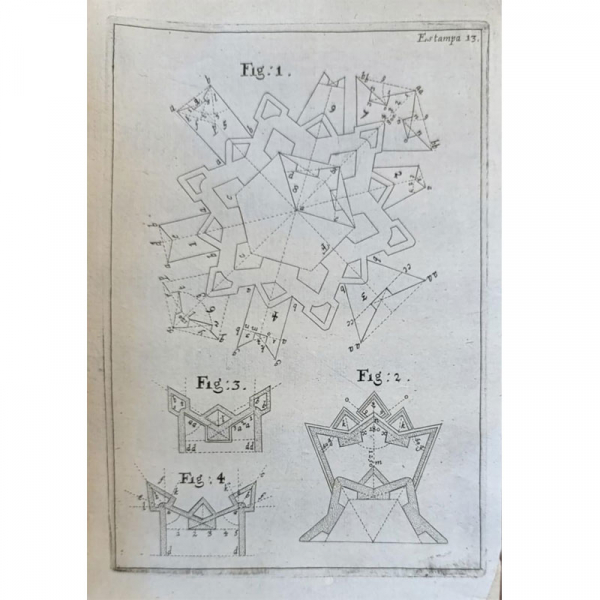 Alonso de Zepeda y Agrada. "EPÍTOME DE LA FORTIFICACIÓN MODERNA. Assí en lo regular, como en lo irregular, reducida a la Regla y al Compás, por diversos modos y los más eficaces de mover la tierra; y otros diversos tratados de la perspectiva, geometría práctica...." Brusselas: Francisco Foppens, 1669.