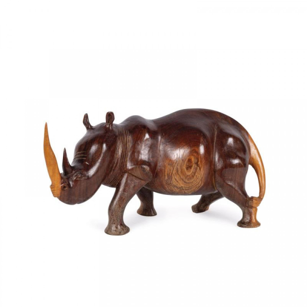 Rinoceronte decorativo realizado en madera de ébano tallada y pulida. Posiblemente de Madagascar. S. XX.