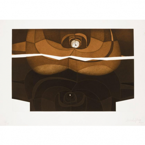 Amadeo Gabino. "Sin título (1980)". Aguafuerte sobre papel. Numerado (10/75) en el ángulo inferior izquierdo.