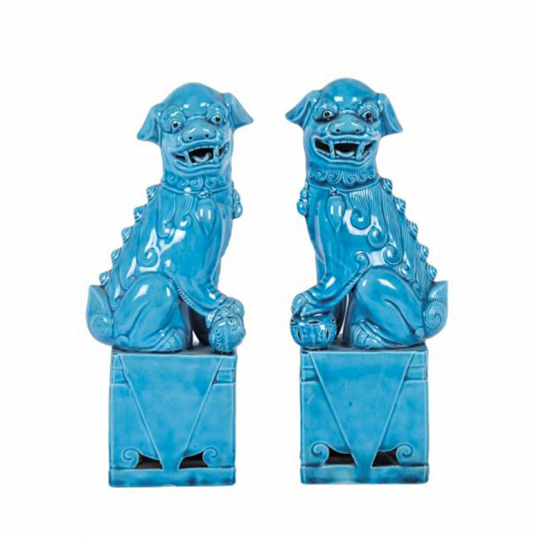 Pareja de leones de foo en cerámica esmaltada y vidriada S. XX.