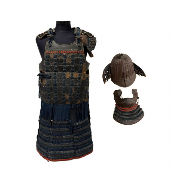 Parte de armadura japonesa samurai Tosei Gusoku. Realizada en hierro, cuero y textil. Japón, Periodo Edo (1603-1868), 1ª mitad del S. XIX.