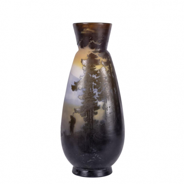 Emille Gallé. Jarrón "Lago", c. 1919. Jarrón en vidrio camafeo tallado y grabado al ácido. Firmado en la parte inferior.