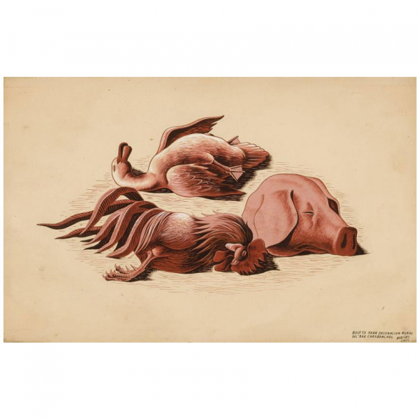 Nicolás Martínez Ortíz de Zárate. "Boceto Bar Carabanchel 1". Gouache sobre papel. Firmado en el ángulo inferior derecho.