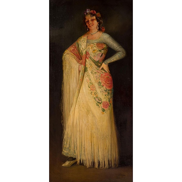 Firmado, fechado y localizado (Madrid, 1909) en el ángulo inferior derecho. 190 x 90 cm